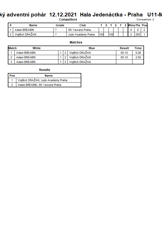 Pražský adventní pohár 12.12.2021 Hala Jedenáctka - Praha