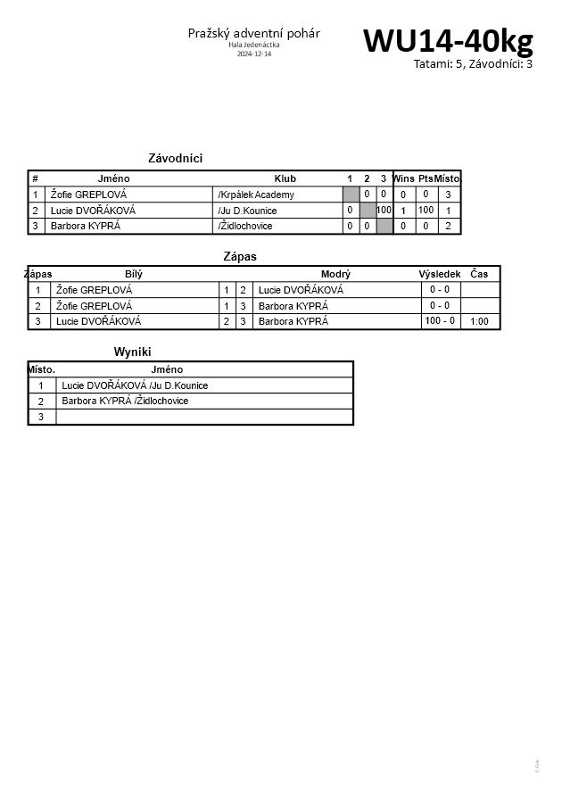 Pražský adventní pohár 2024-12-14 Hala Jedenáctka